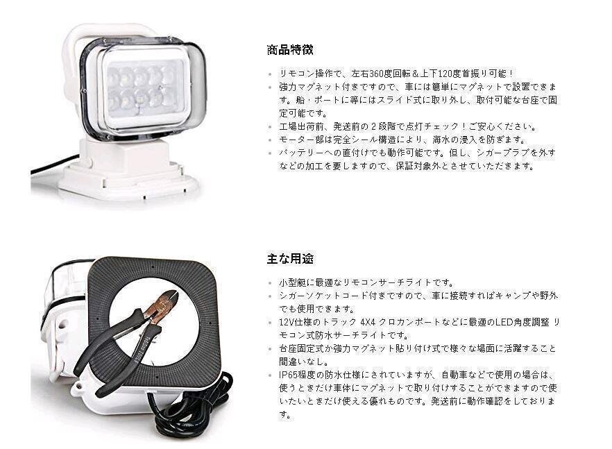 ■ 12V仕様のトラック 4X4 クロカンボートなどに最適のLED角度調整 リモコン式防水サーチライトです。