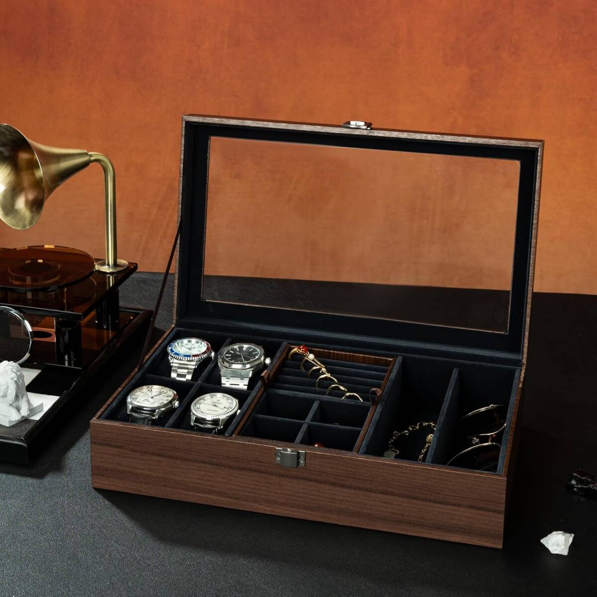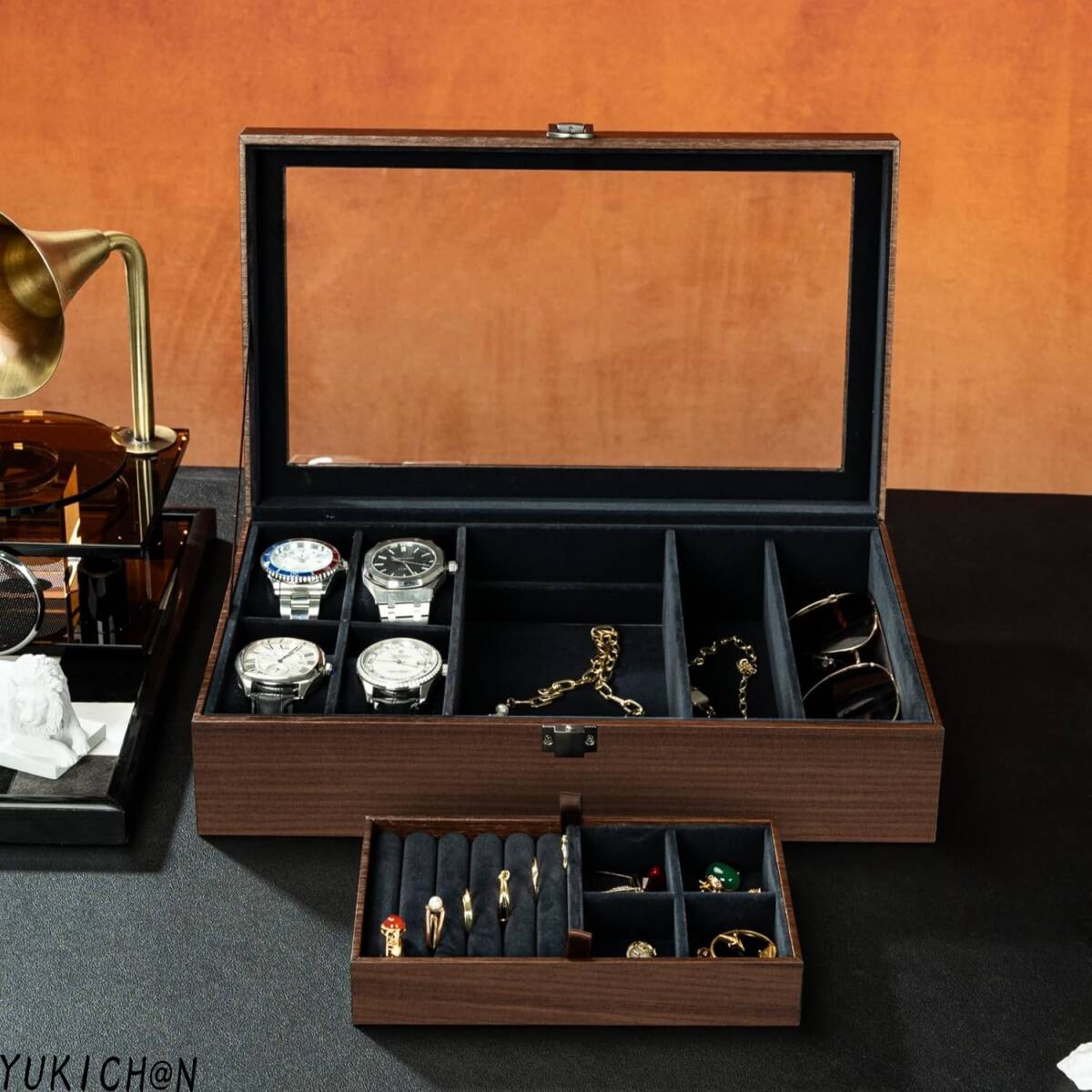 Product name: 時計ケース 腕時計収納ボックス 腕時計4本 眼鏡 サングラス2本 腕時計 ジュエリーコレクションケース アクセサリー収納 PU製木目