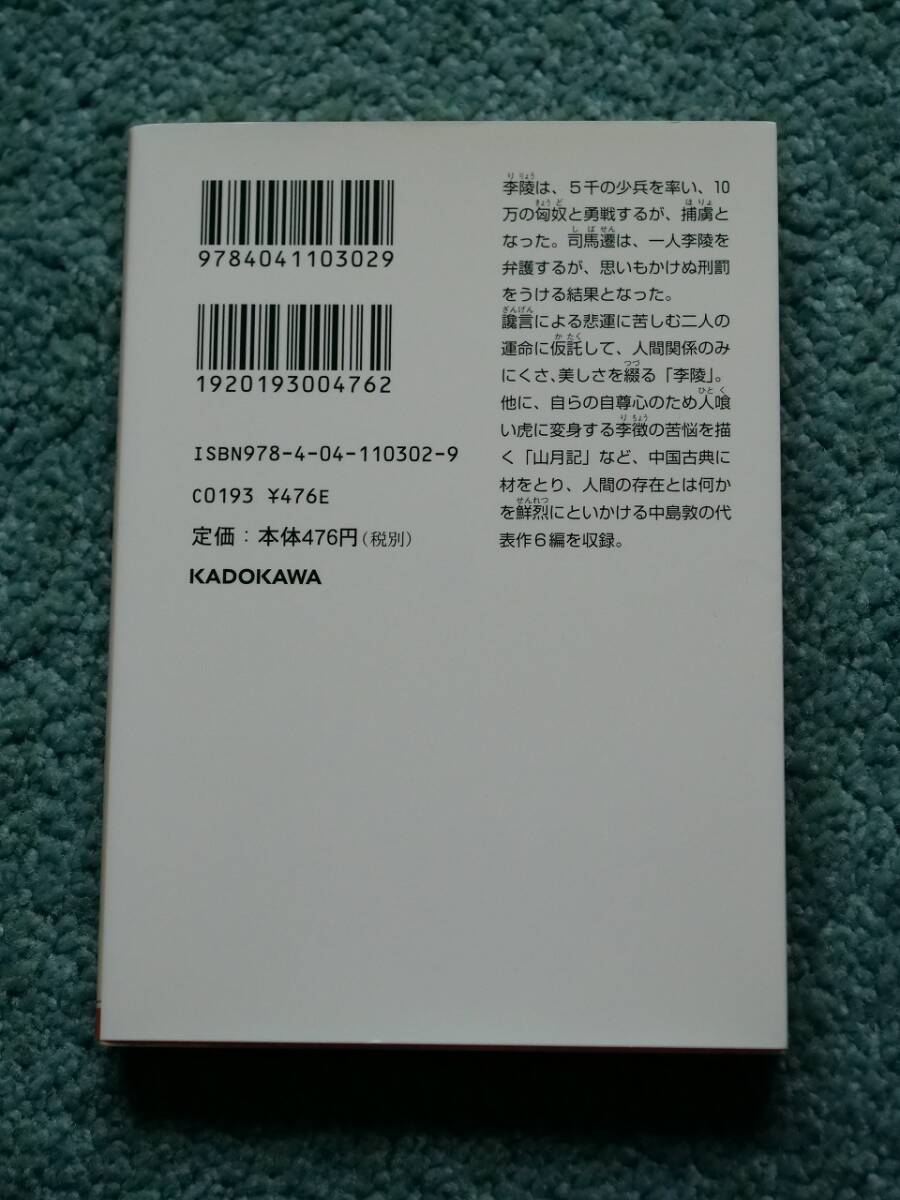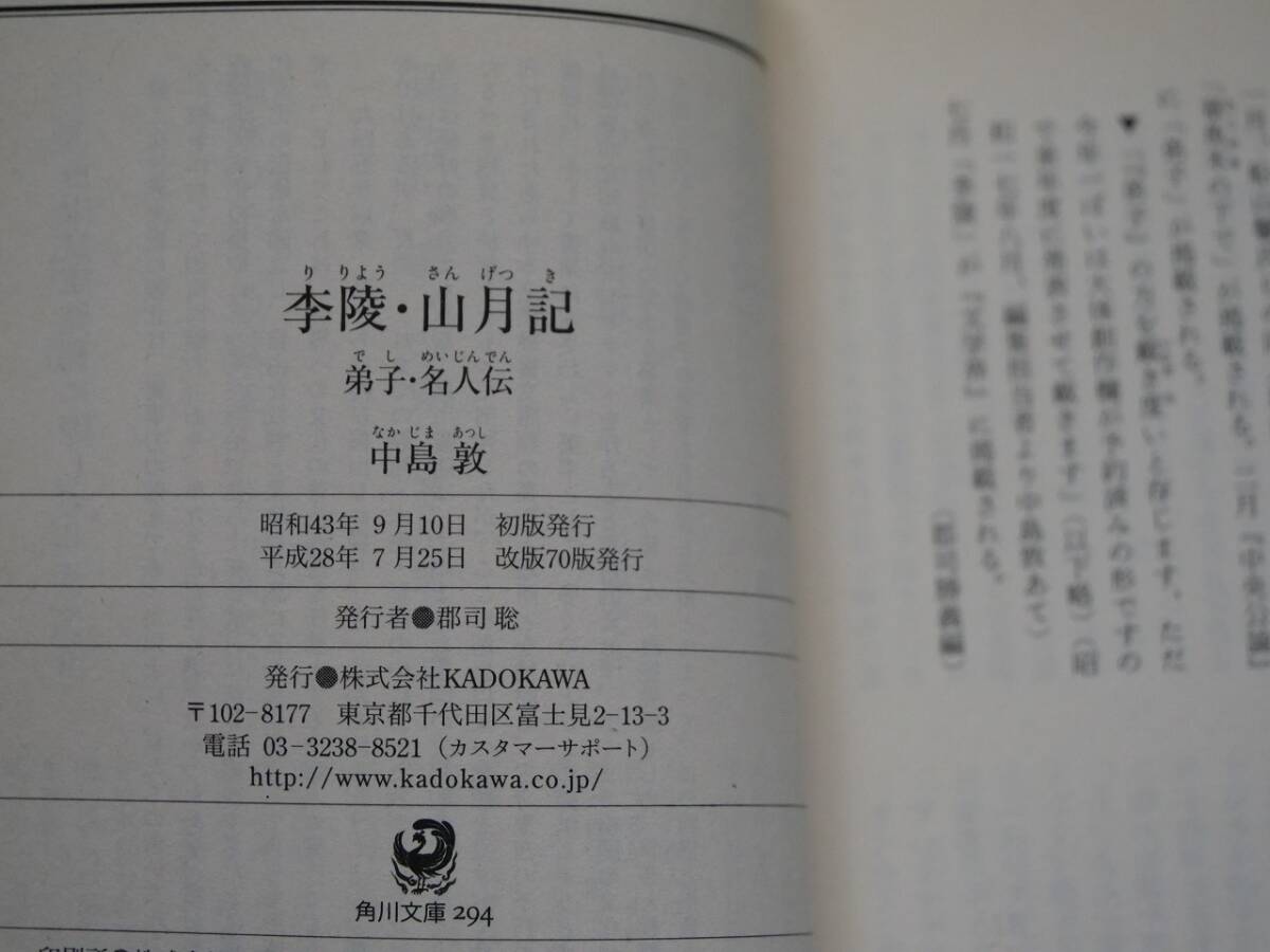 Product name: 李陵・山月記 弟子・名人伝 「文豪ストレイドッグス」コラボカバー / 中島敦 角川文庫