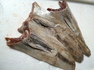 加工前の状態が、この「鰹はらも(ハラス)ブロック」です。