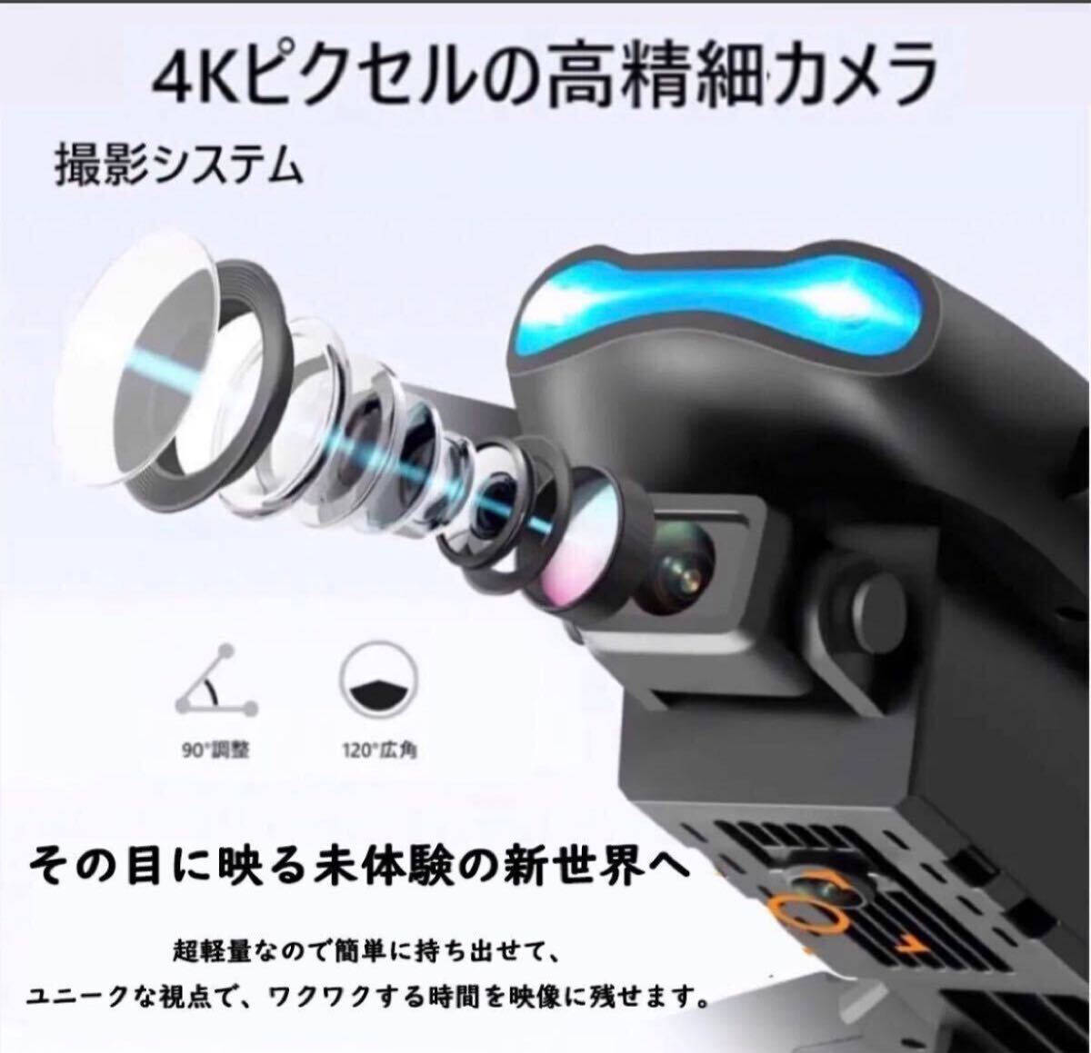 【4K カメラ付き&角度90°調整可能】4K HDカメラ付き、高画質の画像を簡単に撮影できます。滑らかな画質を実現します。アプリと接続すると、リアルタイム写真、ジェスチャー撮影、軌跡飛行モードなど、アプリならではの機能も利用できます。カメラ角度は90°から0°まで手動で調整でき、さまざまな角度から撮影できます、没入感満載のドローン撮影が体験できます。