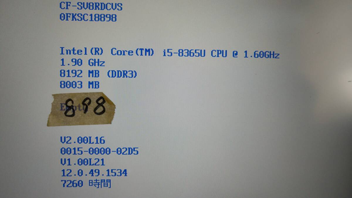〒230円~ MA898 CF-SV8RDCVS i5-8365 1.6GB RAM8GB マザーボードとボトムケース等セット