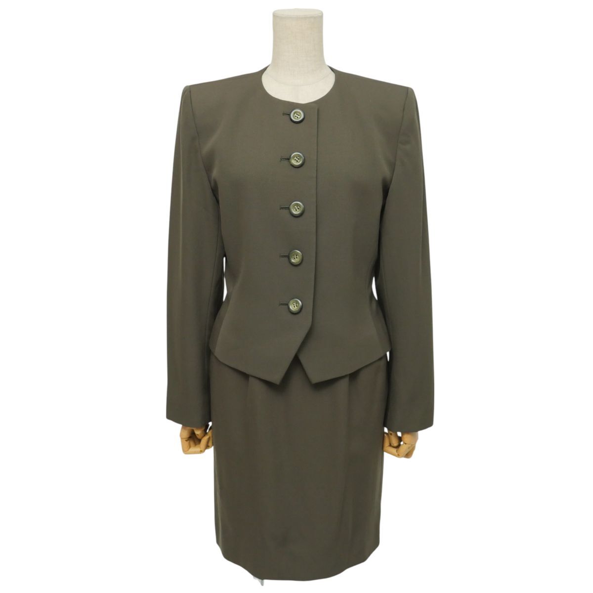 Product name: MH8381☆イヴサンローラン YVES SAINT LAURENT スカートスーツ セットアップ ノーカラージャケット+タイトスカート オリーブ系 M/S