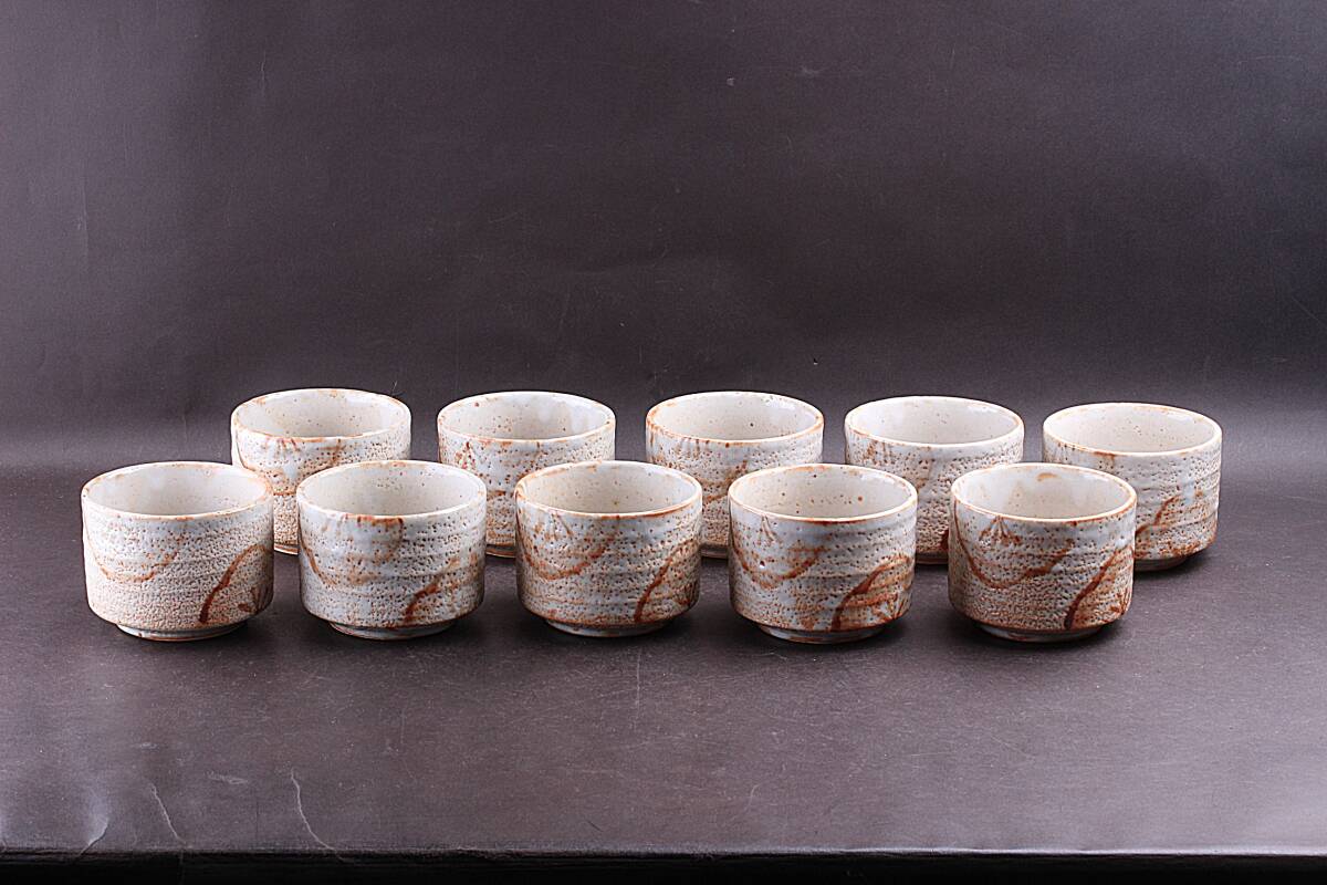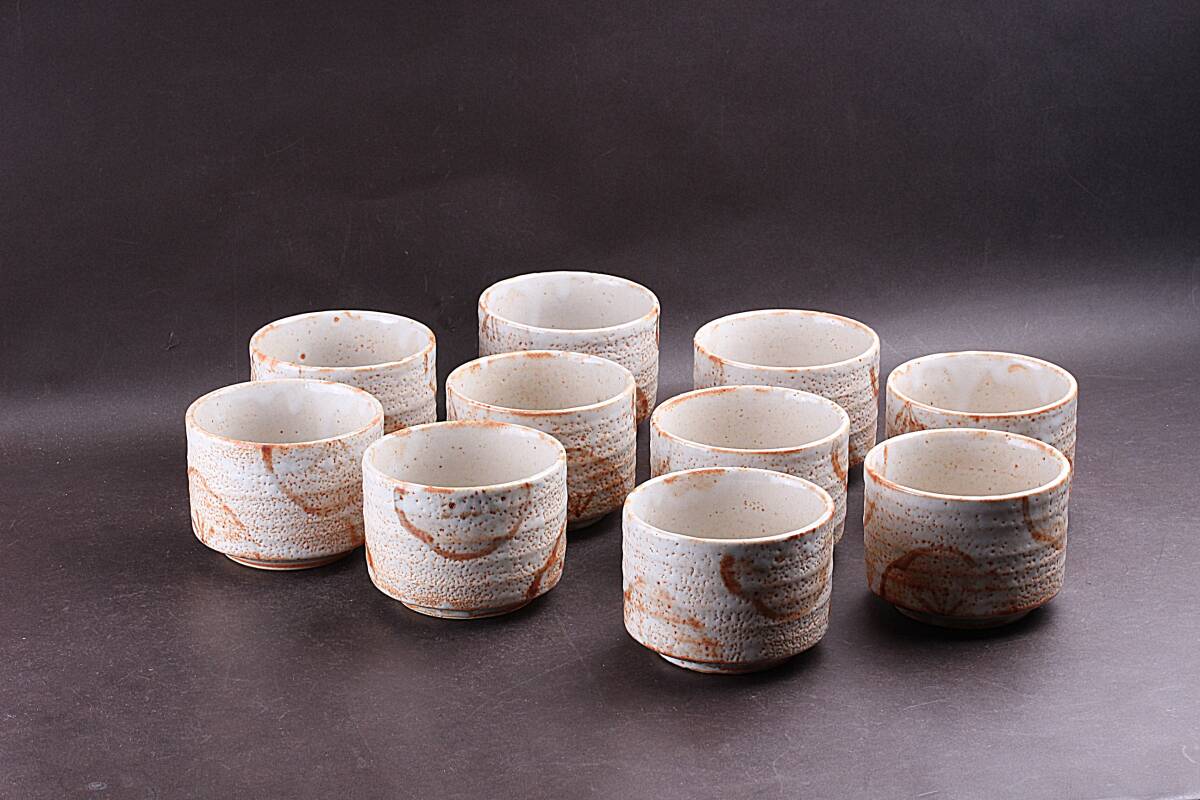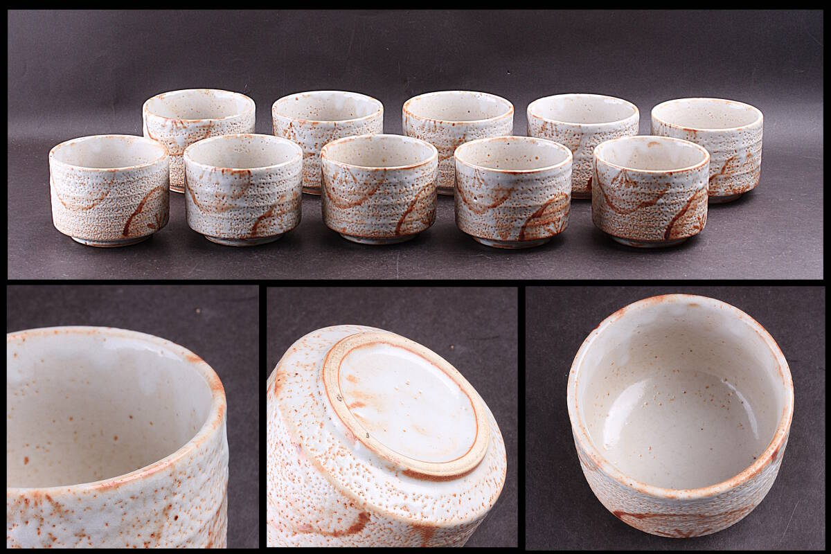 Product name: 【隆庵】美濃焼 志野焼 絵志野 梅花絵 筒向付 10客 懐石小鉢・向付 骨董・懐石道具 美品・本物保証品