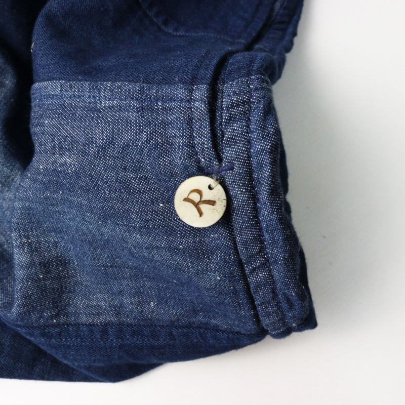 肩や袖にやや色褪せ、右袖に小さな汚れが見られます。