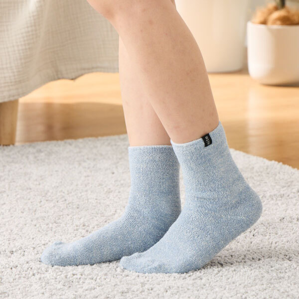足を冷やさないよう、外側は空気をしっかり含むパイル編みで