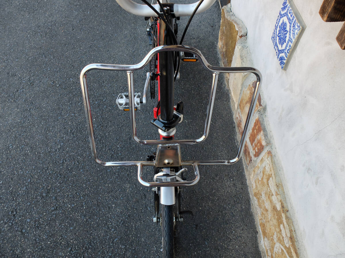 フロントに珍しい形の脱着可能なキャリアが付いて居ります。(メーカー不明 スチールメッキ製です)