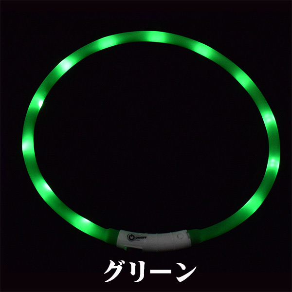 商品名散歩首輪 ペット ライト 犬 猫 光る ライト 小型犬 中型犬 大型犬 LED光る首輪 安全対策 USB 充電式 生活防水 グリーン