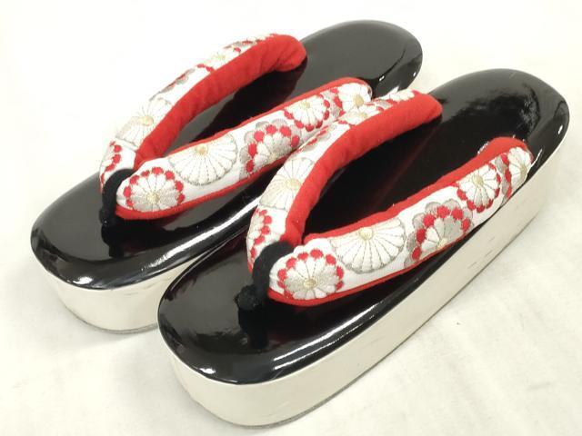 Product name: 平和屋着物▼和装小物 草履 刺繍 菊 黒×白 逸品 DAAR3673zzz