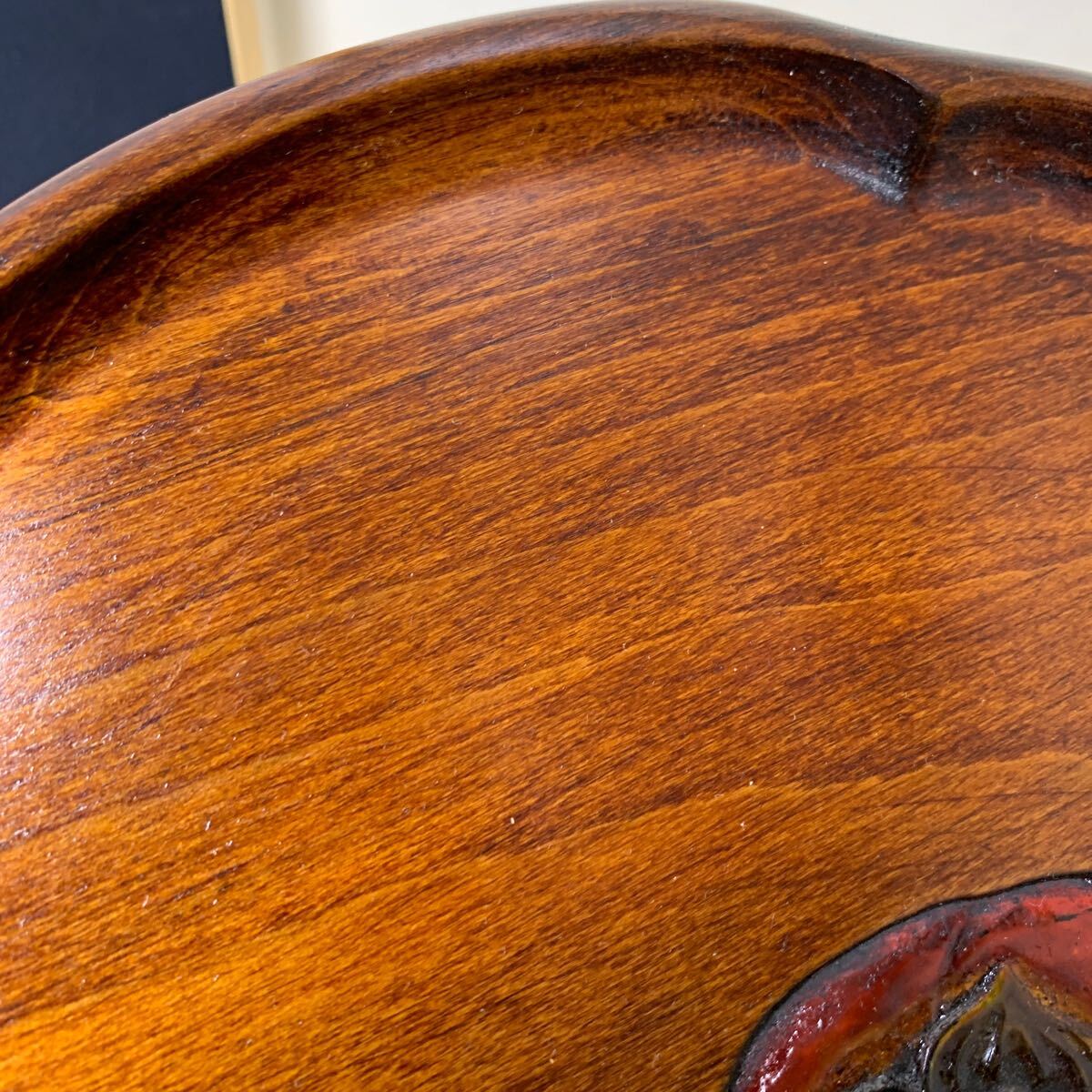 Product name: ★大阪/店舗受け取り可★美品 お盆 丸盆 木彫り 伝統工芸品 鳥城彫 岡山特産 天然木 手作り 手塗り 直径約24.3cm★