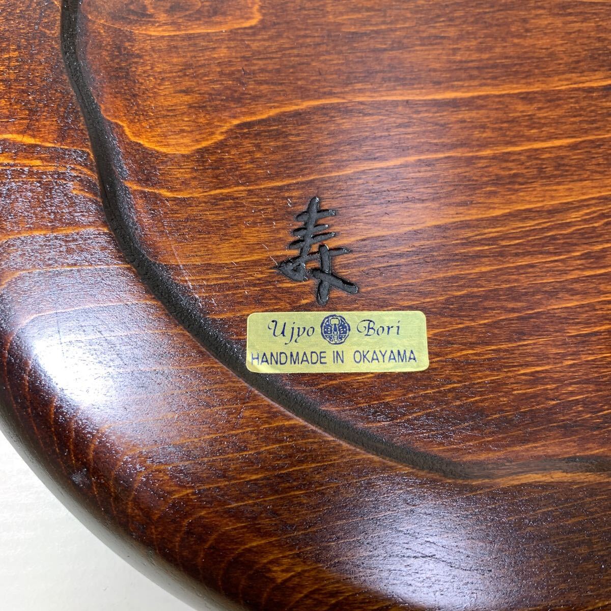 ★大阪/店舗受け取り可★美品 お盆 丸盆 木彫り 伝統工芸品 鳥城彫 岡山特産 天然木 手作り 手塗り 直径約24.3cm★