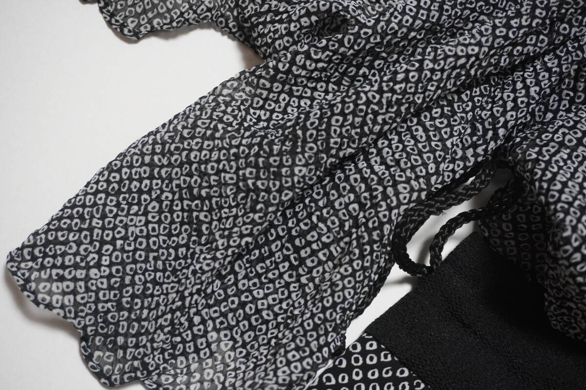 Product name: ネコポス込)新品即決!男の子ゆかた用、(総絞り風)鹿の子柄へこ帯(くろ)+巾着(小)