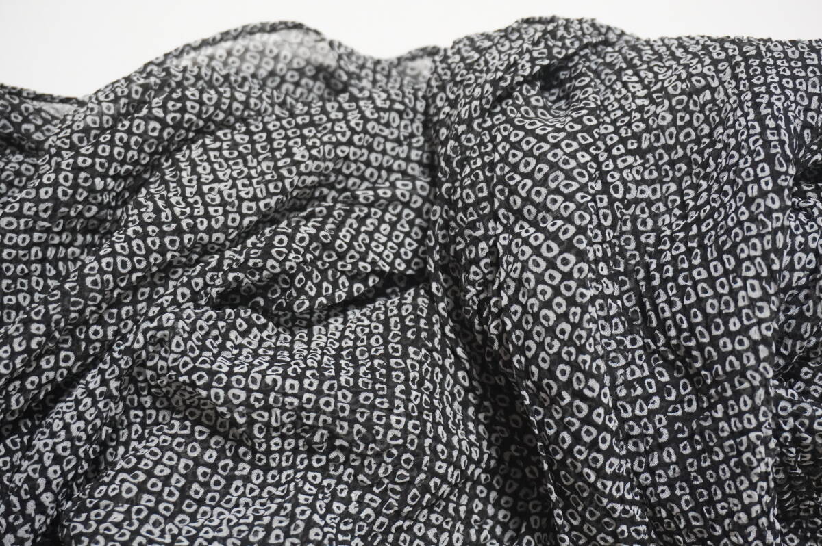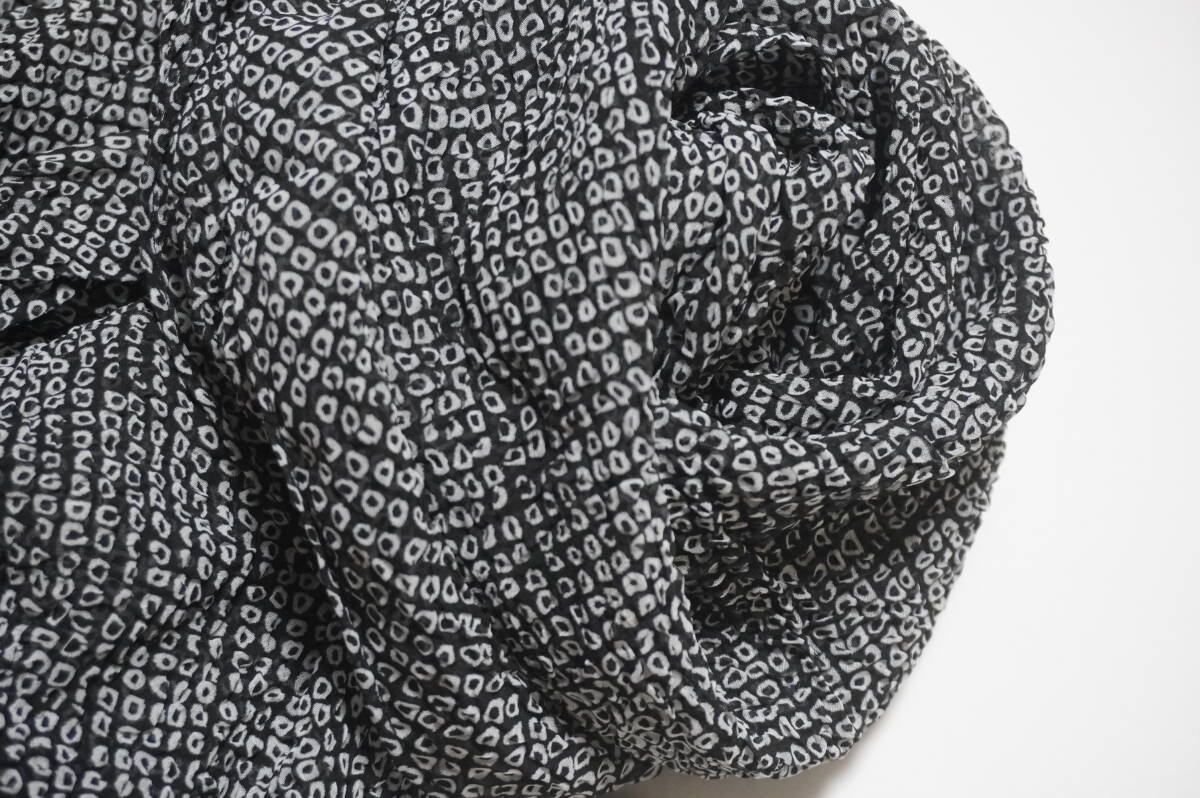 男の子ゆかた用、(総絞り風)柄へこ帯(くろ)  化繊  約35x260cm ’鹿の子柄絞り風の兵児帯+巾着(小)です