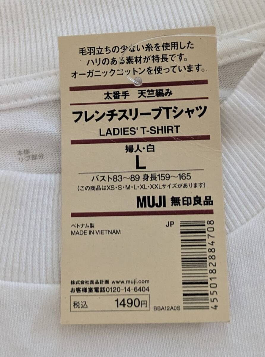 未使用タグ付 無印良品 フレンチ袖スリーブTシャツ サイズL
