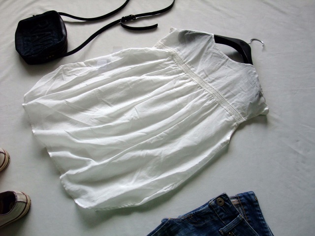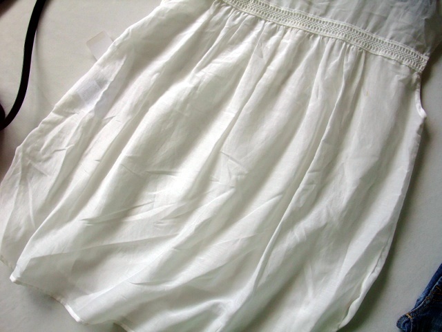 Product name: 訳あり★大人素敵★人気★コットンシルク涼し気軽量素材★ノースリーブギャザー切り替えレースふんわりブラウス★M白オフ前後丈違い