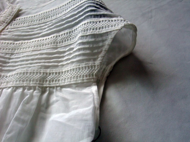 訳あり★大人素敵★人気★コットンシルク涼し気軽量素材★ノースリーブギャザー切り替えレースふんわりブラウス★M白オフ★