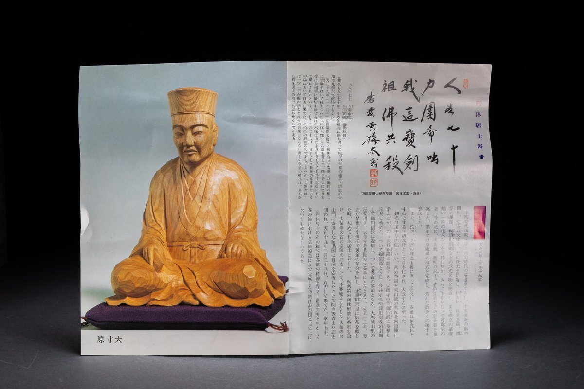 Product name: 【清】時代物「滝村尚之」刻 飛騨高山・一位一刀彫「利休居士像」豪華二重箱 仏教古美術 木彫り 時代仏像/佛像 極細工7L6-527S1