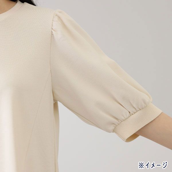 肩をふんわりと包み込むパフスリーブは程良いボリューム感に仕上げました。