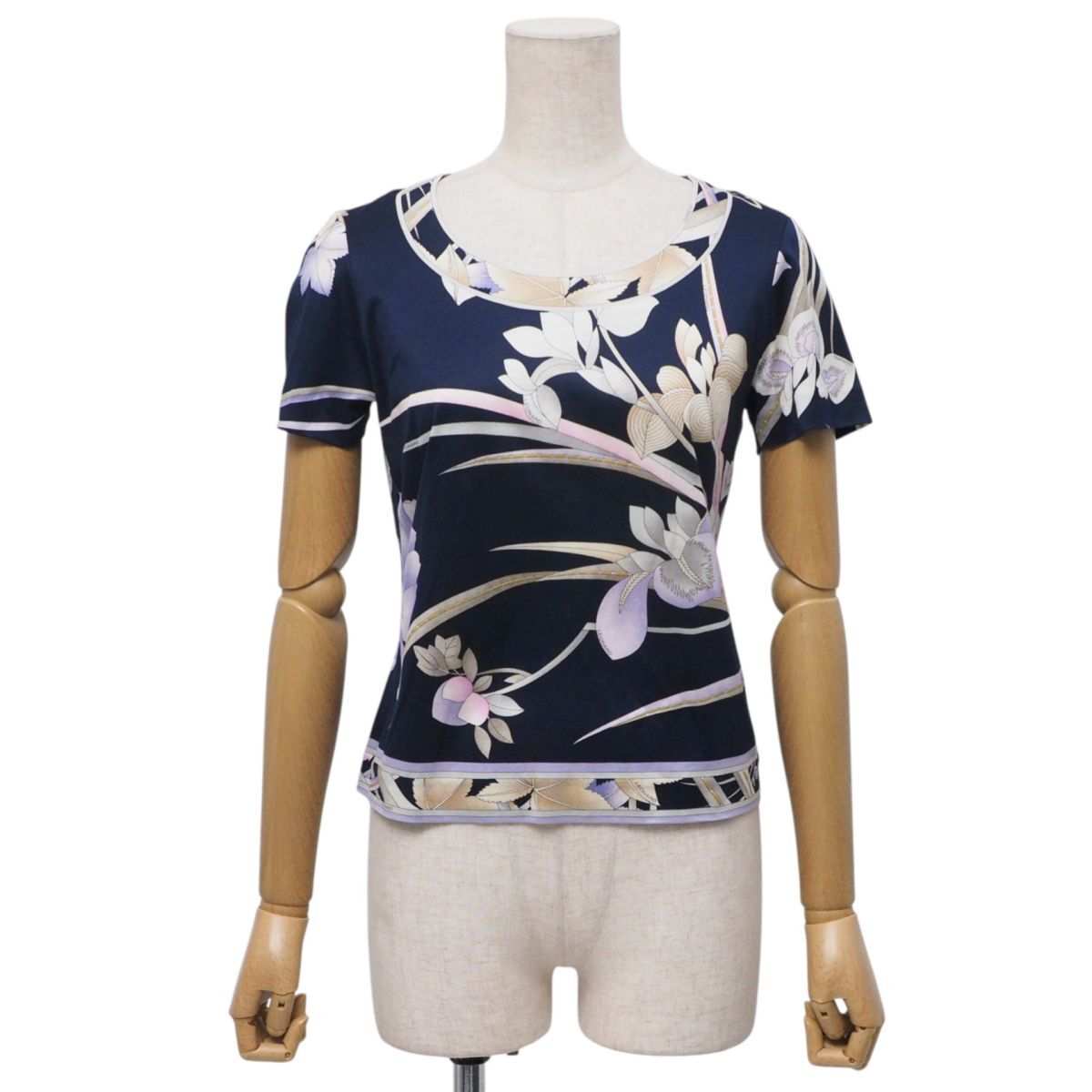 Product name: MH9544☆レオナール LEONARD 花柄 半袖カットソー トップス Tシャツ プルオーバー 総柄 プリント コットン ネイビー系 Mサイズ
