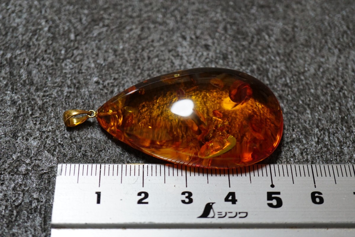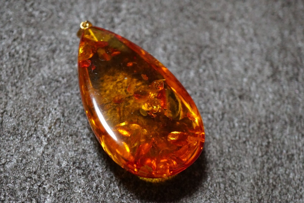 x5 18金 天然琥珀 アンバー コハク ペンダント ヴィンテージ アクセサリー K18刻印 天然石 カラーストーン ネックレス 首飾り 装飾品