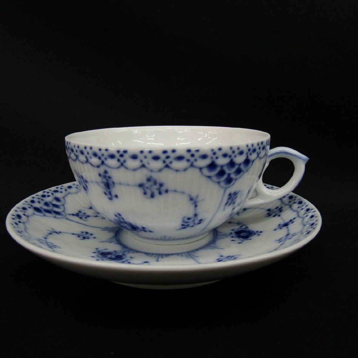 商品 【中古品】RoyalCopenhagen ロイヤルコペンハーゲン ブルーフルーテッド ハーフレース ティーカップ&ソーサー 1客 896120211 0806