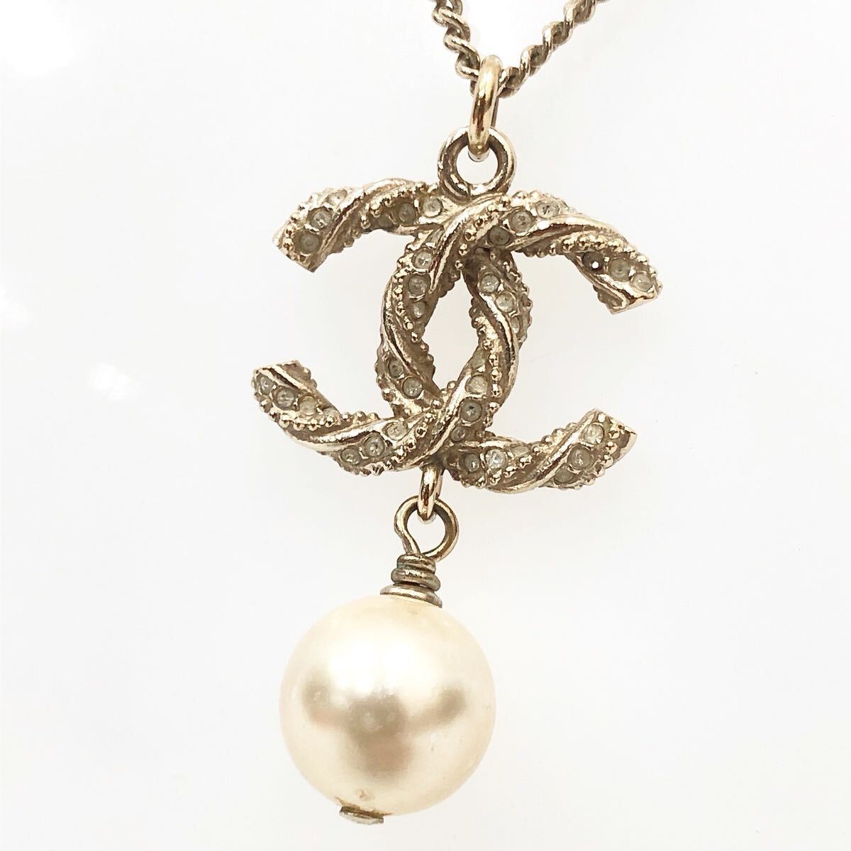 美品 正規品 CHANEL シャネル ネックレス B13P ココマーク フェイクパール ラインストーン