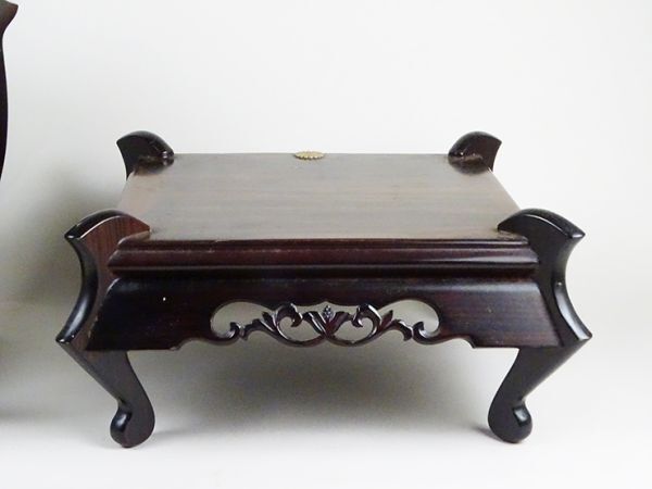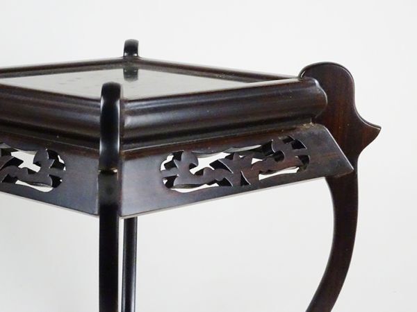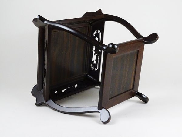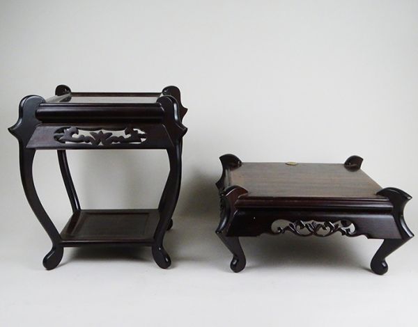 Product name: D-258■縞黒檀 花台 透かし彫り 四方台 二点 飾り台木彫