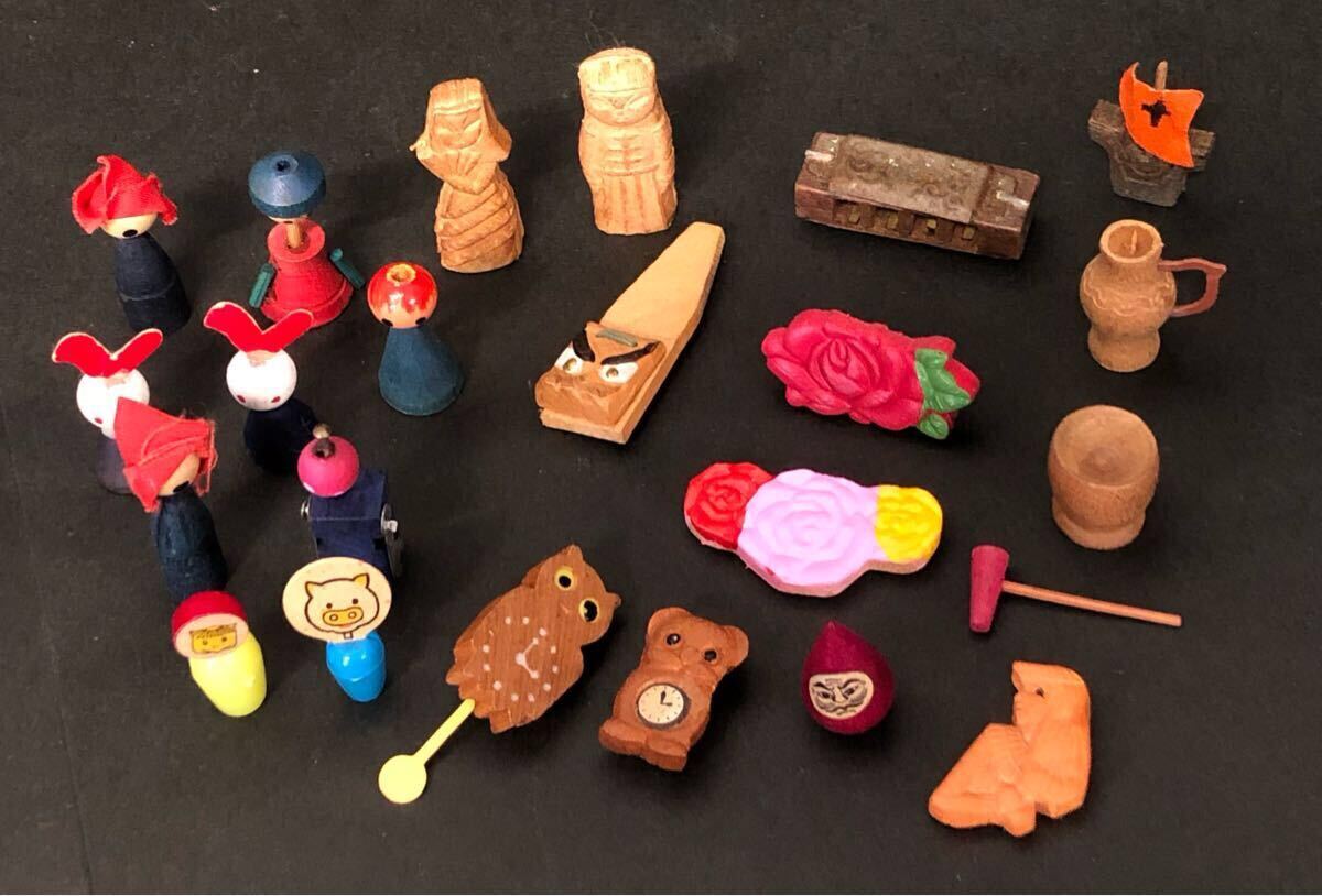 椅子と机、杵と臼、羽子板と羽などはセットものだとは思いますが、一点ずつ数えています。