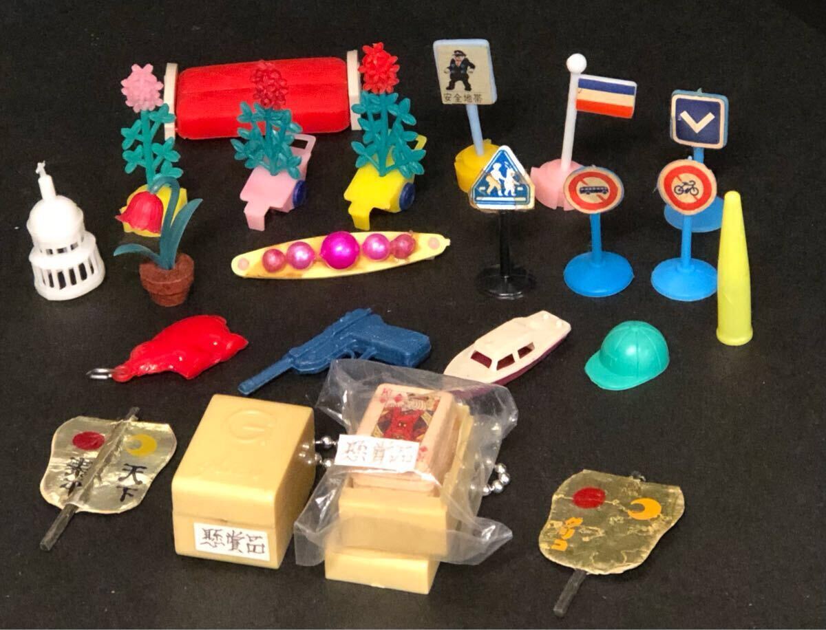 Product name: グリコ 不二家 など おまけ ミニチュア 玩具 木製 ブリキ 車 戦車 飛行機 ヘリコプター 家具 時計 家 カメラ など 約190点