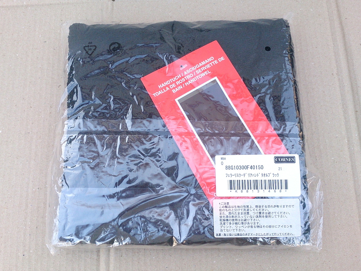 タグには CORNES「フェラーリ スクーデリア ハンドタオル ブラック」と印刷されており