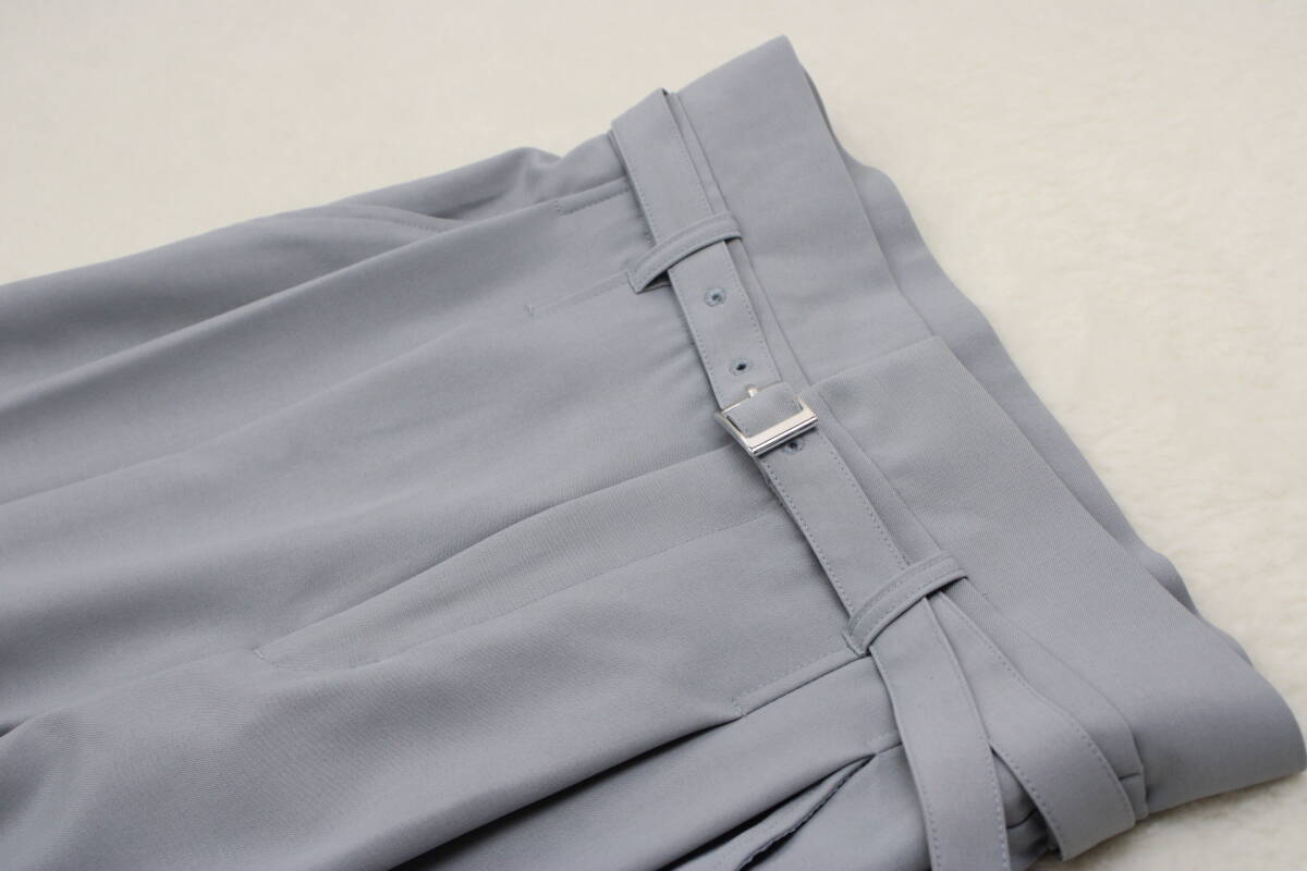 Product name: 5-344 新品 ウエストゴム防シワ&接触冷感ベルト付きタックワイドパンツ サックスMサイズ