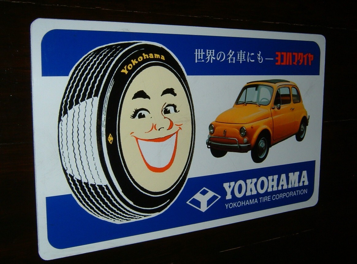 Product name: 中古☆「ヨコハマタイヤ+フィアット500」看板 (検:ヌオーヴァ500.FIAT500.NUOVA.アバルト.昭和レトロ.旧車.イタリア車.車庫/インテリア用