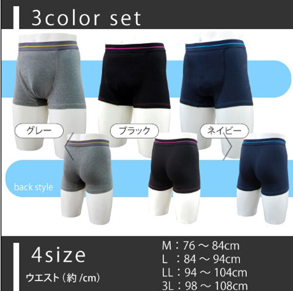 内 容 ■メンズ 吸水消臭ボクサーパンツ 鉄仮面 3色組