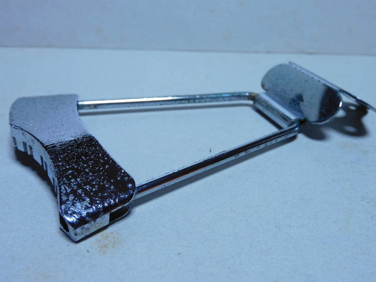 「国産ジャパンビンテージ」1960~70年代製「ブランコ型12弦用テールピース/クロームメッキ/エイジド」です。年相応の経年劣化がありますので画像でご確認下さい。取り付け用ネジは付いていません。画像にあるものが全てです。当方にて簡単なクリーニングをしておきましたが好みのクリーニングは落札者様でお願いします。画像やコメントをご参考に入札お願い致します。それではオーションが終わりますまでよろしくお願い致します。中古品なので落札後のクレームやキャンセルはご遠慮下さい。またオークション開催中の入札の取り消しもお受け出来ません。発送は日本全国「レターパックライト」で430円です。