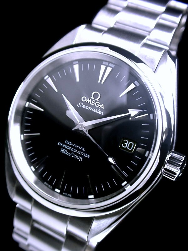 ラージサイズの美しいブラックダイヤルが魅力のシーマスターアクアテラ コーアクシャルです。