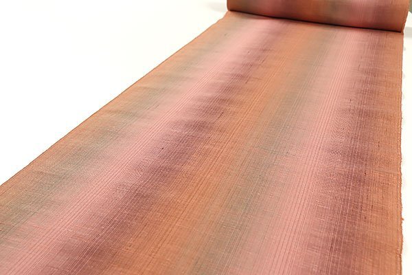 生地には、グレーや葡萄色、黄色みのピンク色などのお色目で縦にぼかす様に織り上げられております。