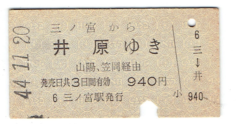 Product name: 《硬券 連絡乗車券》三ノ宮から 井原鉄道 井原ゆき 昭和44年