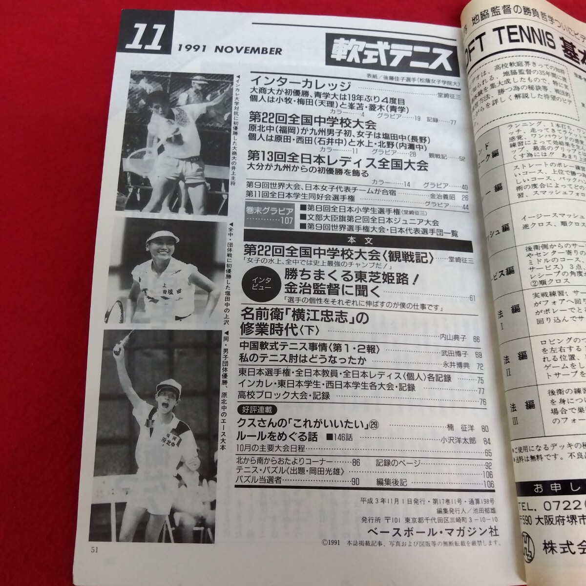 Hg-152/軟式テニス 1991年11月号 インターカレッジ 大商大が歓喜の初、青学大は19年ぶり第22回全国中学校大会 他/L2/70818