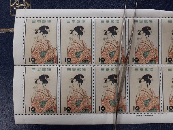 0803Y39 日本切手 切手趣味週間 ビードロを吹く娘 まりつき シート ブロック 台紙に貼りつき等あり まとめ *詳細は写真参照