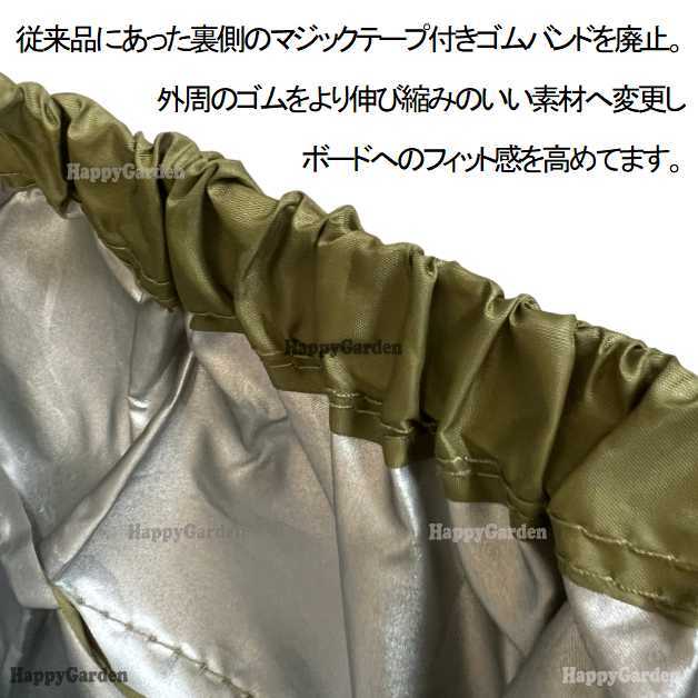 ハードケースやニットケースへのワックスの付着を防ぐ、ナイロン素材のデッキカバー ワックスが付着した際も掃除はラクラク! 従来品にあった裏側のマジックテープ付きゴムバンドを廃止し、外周のゴムをより伸び縮みのいい素材へ変更