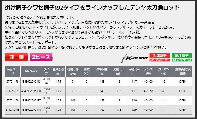 掛け調子クワセ調子の2タイプをラインナップしたテンヤ太刀魚ロッド