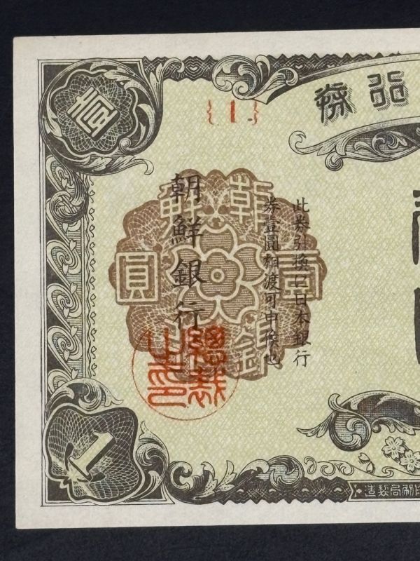 ピン札 未使用 朝鮮銀行券 1円 一圓 壱圓 古紙幣 戦前 大日本帝国政府 外国紙幣