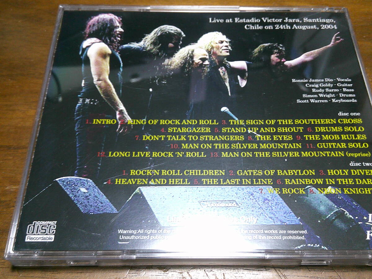 2004/8/24に行われたライブを収録した作品です。サバスやレインボーの楽曲を含め素晴らしい演奏で聴かせてくれます。中古盤ですが再生に支障があるような傷汚れはありません。