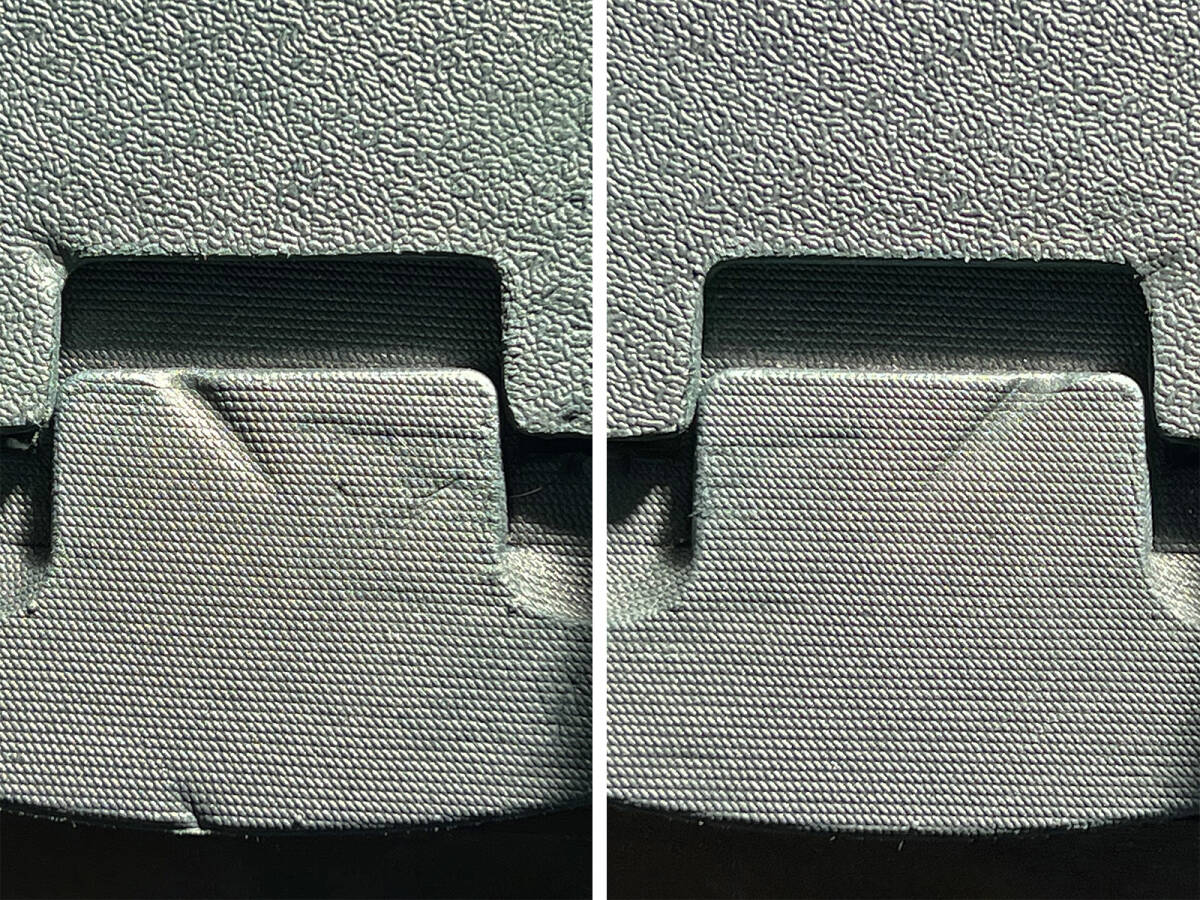 保管中はアンクルストラップを丸めてヒールカップ内に収めていたのでフットベットにラチェットの跡が少し残っています。