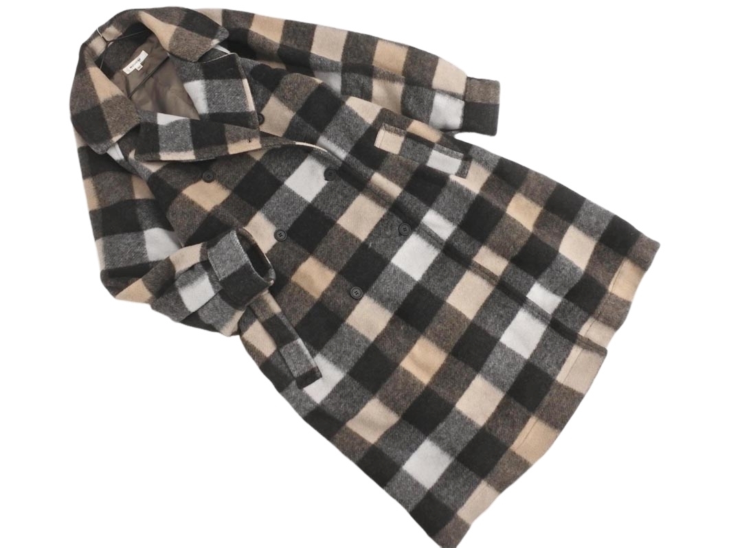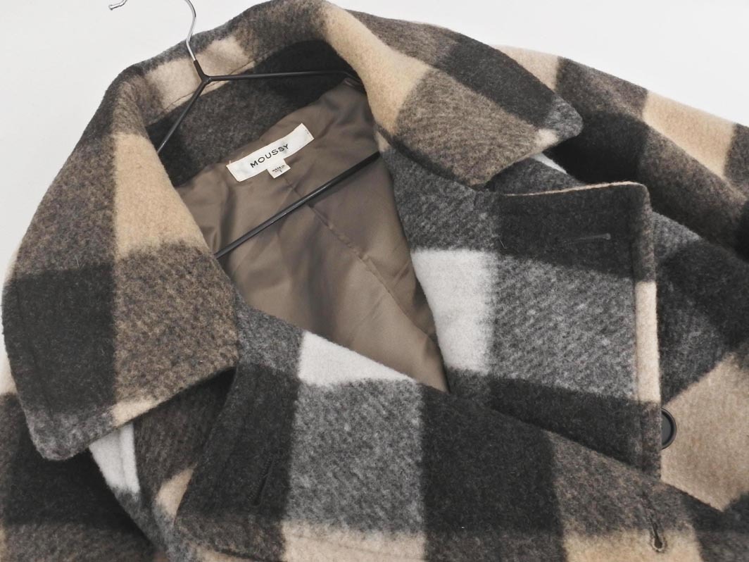Product name: MOUSSY マウジー ウール混 チェック ダブルボタン ステンカラー コート size1/白x黒xベージュ ◇■ ☆ fib7 レディース