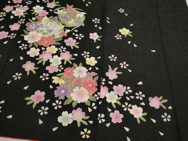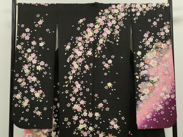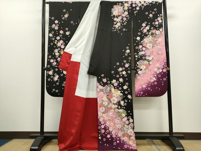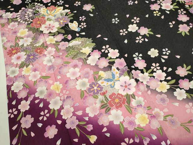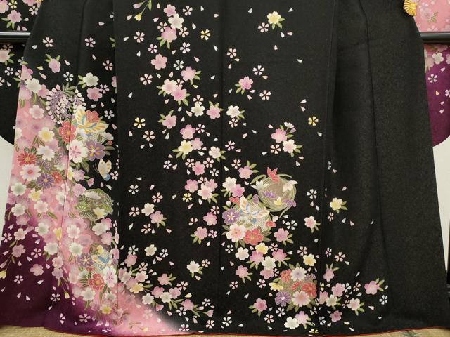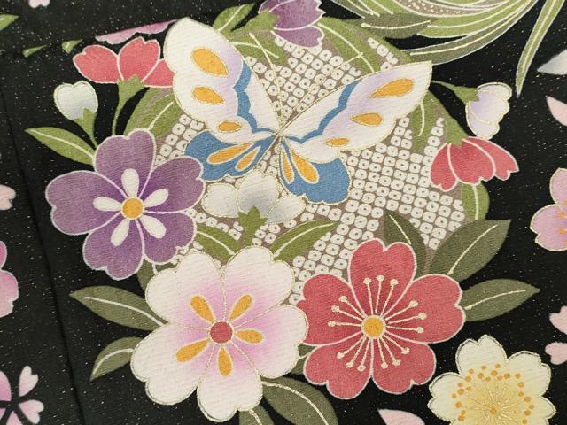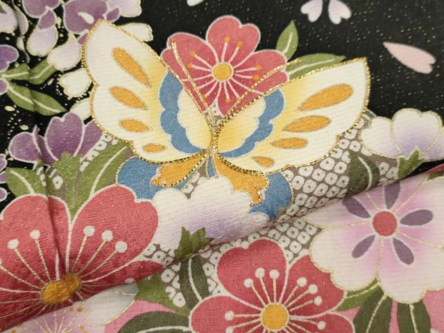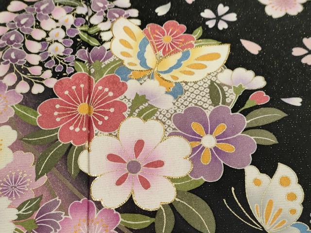 Product name: 平和屋着物▼豪華振袖 駒刺繍 舞蝶草花丸文 暈し染め 黒地 金通し地 正絹 逸品 CAAX6194ze