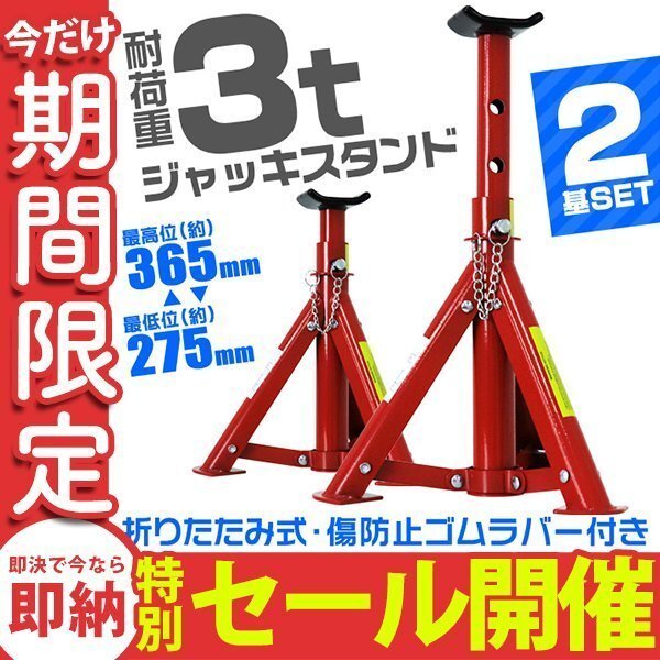 【数量限定セール】ジャッキスタンド 2基セット 耐荷重3t 馬ジャッキ 傷防止ゴムラバー付 高さ3段階 折りたたみ収納 タイヤ ホイール 新品