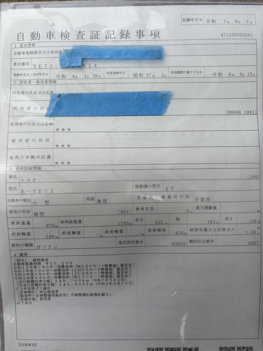 Product name: トヨタカローラ1600GT 4ドアセダン TE71 2TGエンジン 5MT カスタム多数