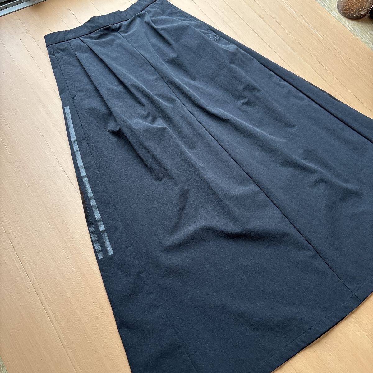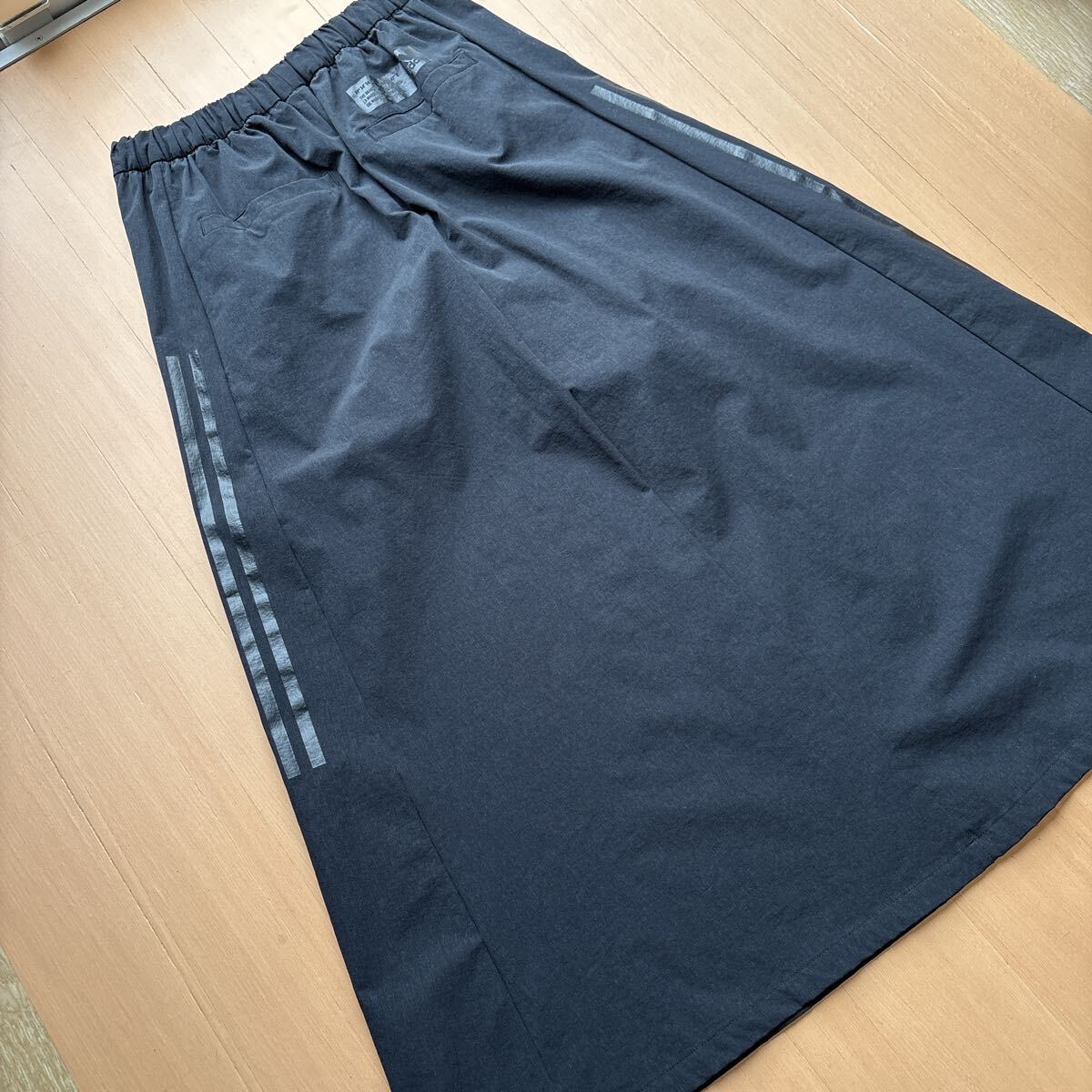アディダス 3本ラインの黒ロングスカートMになります。未使用品です。両脇ポケット後ろポケットあり。ラインは黒ですので目立つ事無くアディダスですが上品なかたち。