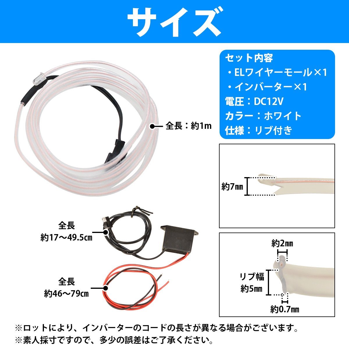 Product name: 【送料無料】『全長1m 白/ホワイト』有機ELチューブ 変形/カット可能 ネオン ワイヤー モール 車内用 リブ付き アンビエントライト 100cm